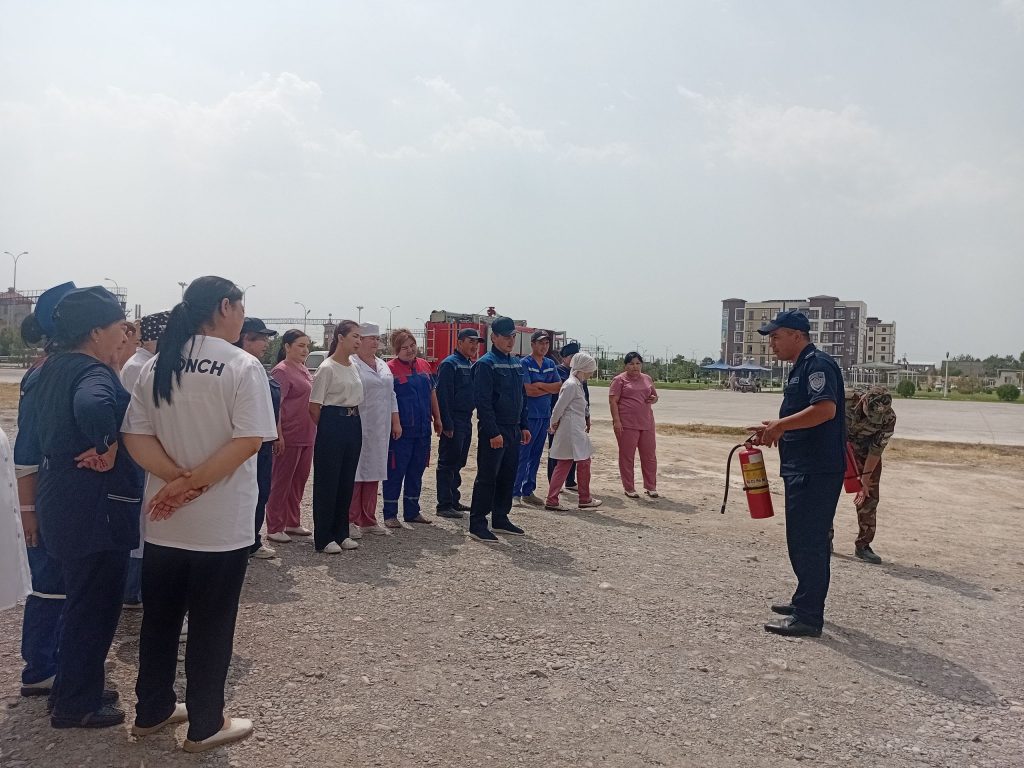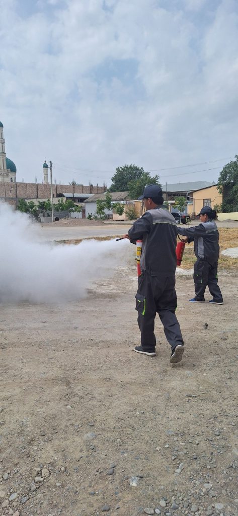 va boshqalar)  , bochkalar va suv bilan to‘ldirilgan idishlar, qo‘lda foydalaniladigan mexanizatsiyalashmagan va mexanizatsiyalashgan yong‘inga qarshi vositalar (ilgaklar, lomlar, belkuraklar, boltalar, elektr simlarini kesish moslamalari, elektr dvigatel tomonidan boshqariladigan asboblar, ichki yonish dvigateli va boshqalar) to‘g‘risida tadbir ishtirokchilariga tushuntirib o‘tdi.